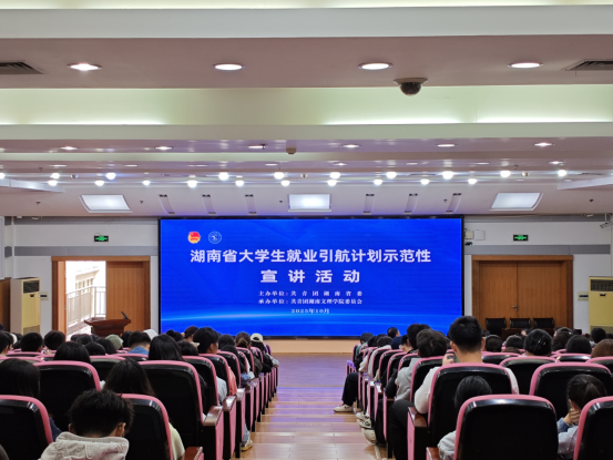 10月17日上午,湖南省大学生就业引航计划示范性宣讲活动在图书馆报告厅举行。本次活动由共青团湖南省委主办,共青团湖南文理学院委员会、湖南文理学院招生就业处联合承办。共青团湖南省委学校部三级调研员文明,我校党委副书记李红革出席活动,团委、招生就业处相关负责人及200余名师生代表参加活动。