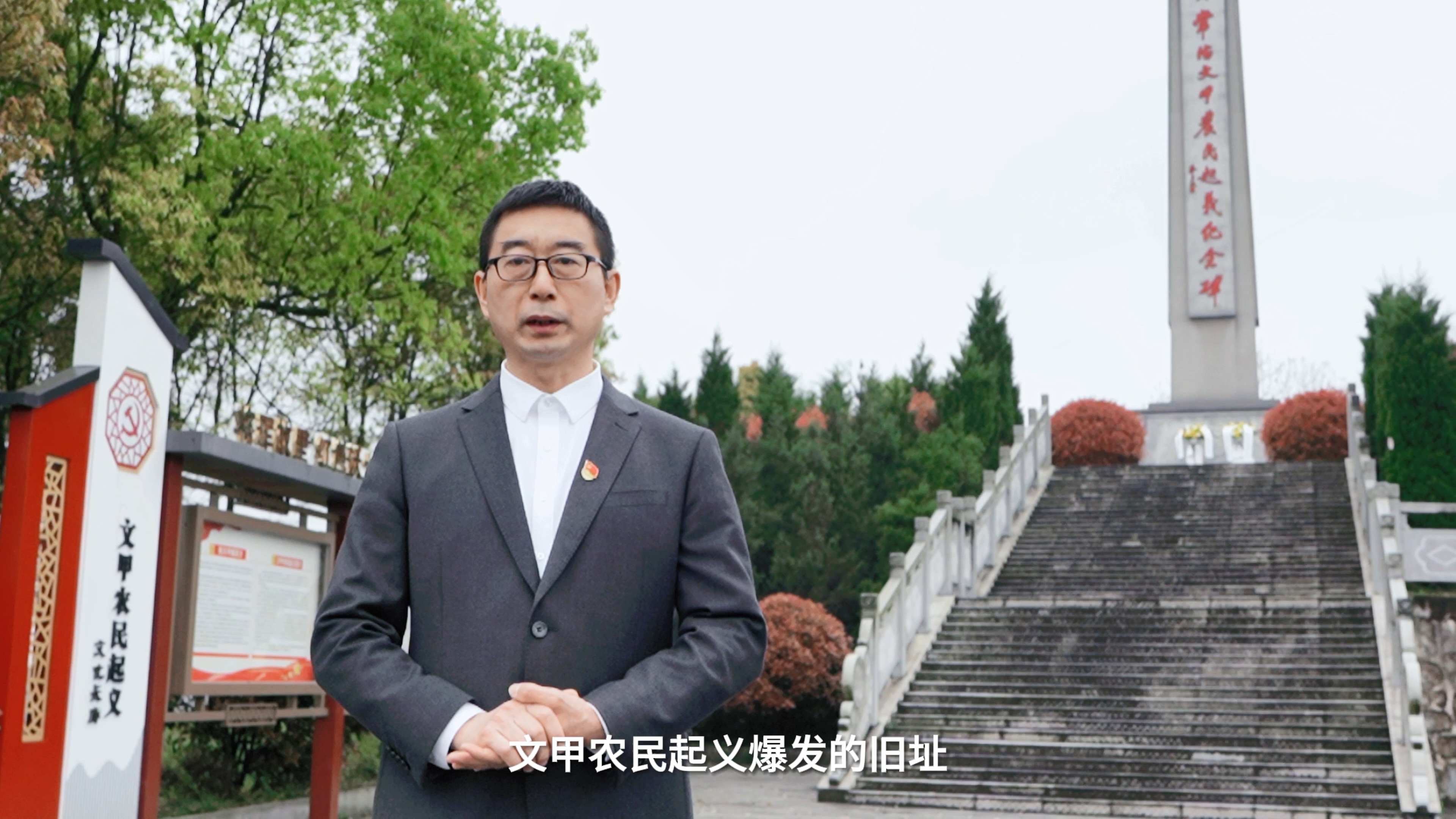 黄向阳教授在文甲农民起义纪念碑前上微团课