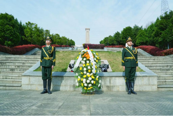 青山不语,松柏林立,文理师生伫立于庄严肃穆的桃源县千梯山烈士陵园前,齐声唱响国歌,将敬仰融入雄壮激昂的国歌声中,国旗仪仗队队员抬起花篮,正步走向烈士纪念塔,将花篮摆放在塔下,校团委书记胡婷上前整理花篮绶带,师生们神情肃穆,饱含着对革命先烈的崇高敬意,以及对那段峥嵘岁月的深切追思,向革命先烈行三鞠躬礼并默哀。