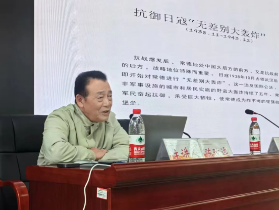 10月24日下午,我校白马湖青年讲坛第十九期在船型楼报告厅举行。本次讲坛特别邀请学校退休教师、湖南省侵华日军细菌战罪行研究基地原首席专家陈致远教授主讲,他以《传承先辈坚韧顽强的抗战精神—常德抗战英雄城八年史追述》为题,为240余名师生上了一堂生动深刻的历史课。